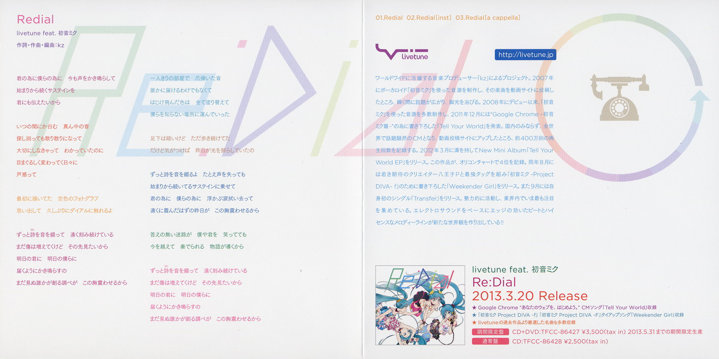 TSUTAYA only Rental Single [Re:Dial] / livetune feat. Hatsune Miku