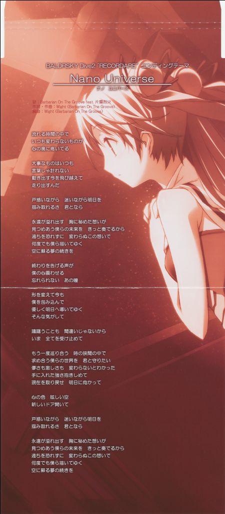 BALDRSKY Dive2 "RECORDARE" Ending Theme 'Nano Universe'