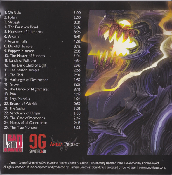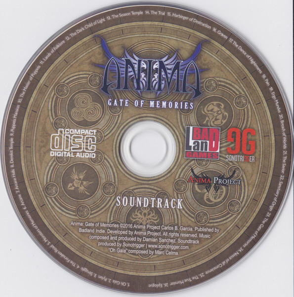 Soundtrack to the PC/Sony PlayStation 4 game Anima Gate of Memories.