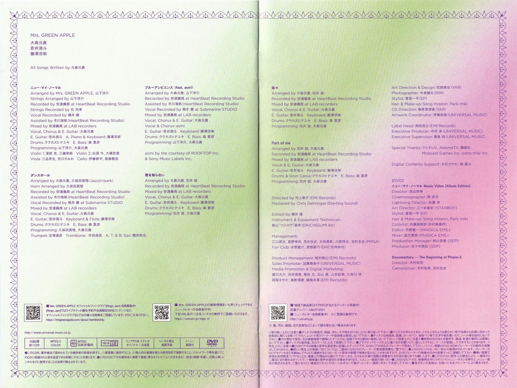 Media Promotion & Digital Marketing: 藤川大介, 光持美香, 関谷允, 北山俊, 山本紗栄, 久保川渉, 阿部さやか, Takuma Shimakage, 細島末菜 (EMI Records)