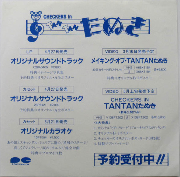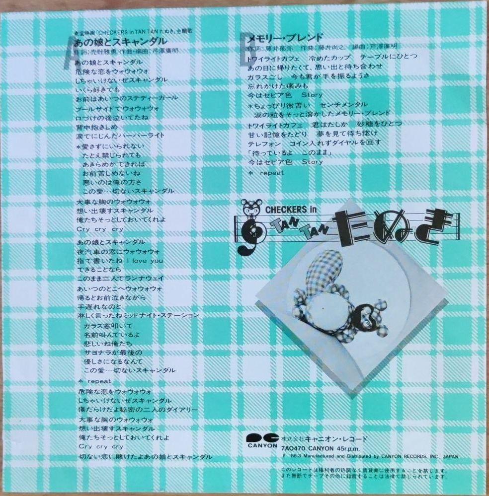 Side 1: Toho Movie "CHECKERS in TAN TAN Tanuki" Theme Song