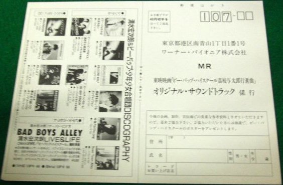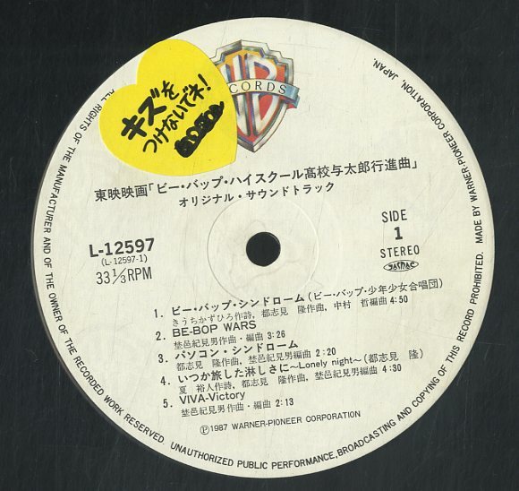Original Soundtrack from the third live action movie based on the "Be-Bop-Highschool" manga: "Be-Bop-Highschool Koukou Yotarou Koushinkyoku" (1987)