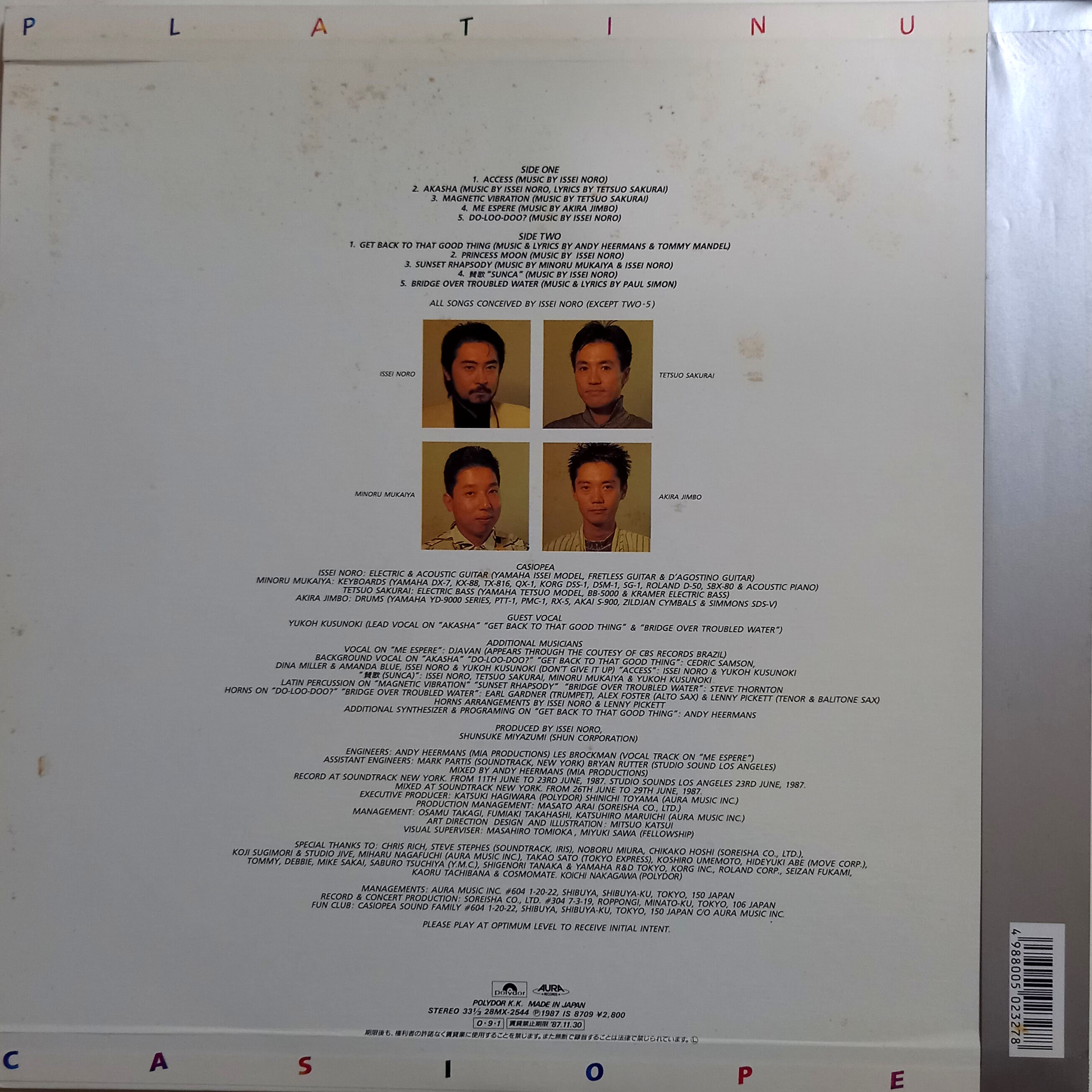 BACKGROUND VOCAL ON “AKASHA” “DO-LOO-DOO?” “GET BACK TO THAT GOOD THING”: CEDRIC SAMSON, DINA MILLER & AMANDA BLUE, ISSEI NORO & YUKOH KUSUNOKI (DON’T GIVE IT UP)