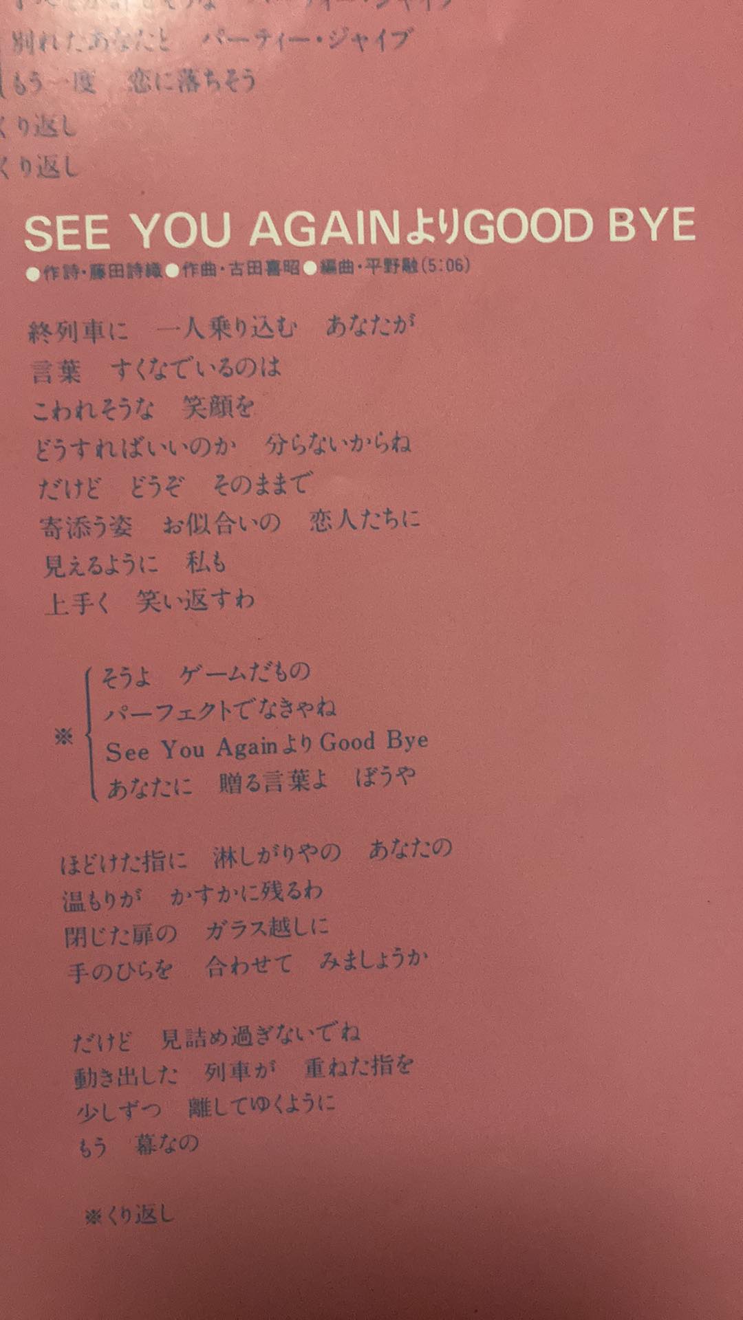 | 10 | SEE YOU AGAIN より GOOD BYE |