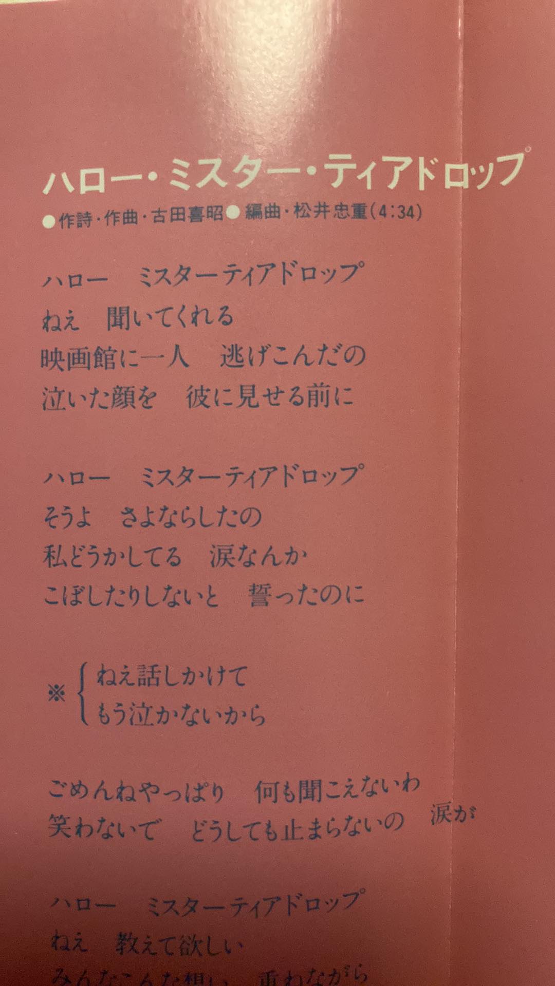| 4 | ハロー・ミスタ・ティアドロップ | ||