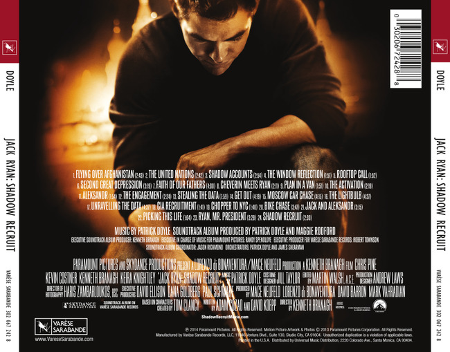 Varese Sarabande готовит саундтрек фильма «Джек Райан: Теория хаоса». Релиз выйдет 4 февраля. Цена — 16,98$. Музыку сочинил Патрик Дойл («Храбрая сердцем», Puppeteer). Альбом содержит 24 темы. Цифровую версию можно купить в Amazon за 9,99$. Треклист перед вами. 01 Flying Over Afghanistan 02 The United Nations 03 Shadow Accounts 04... Показать