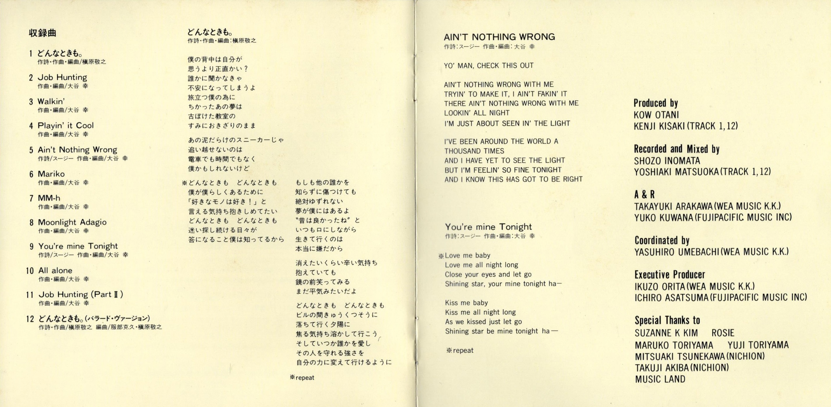 Recorded and Mixed by SHOZO INOMATA, YOSHIAKI MATSUOKA (TRACK 1,12)