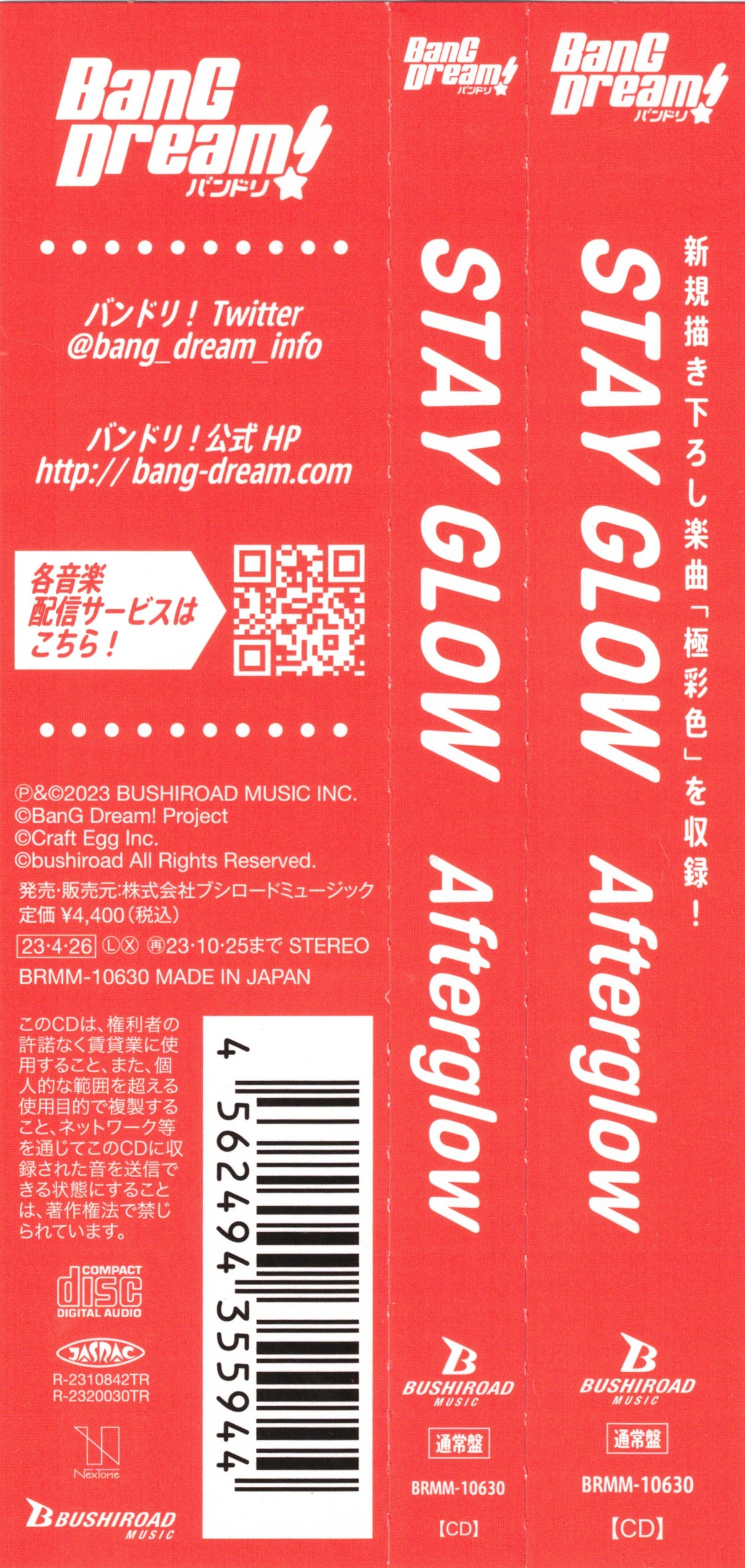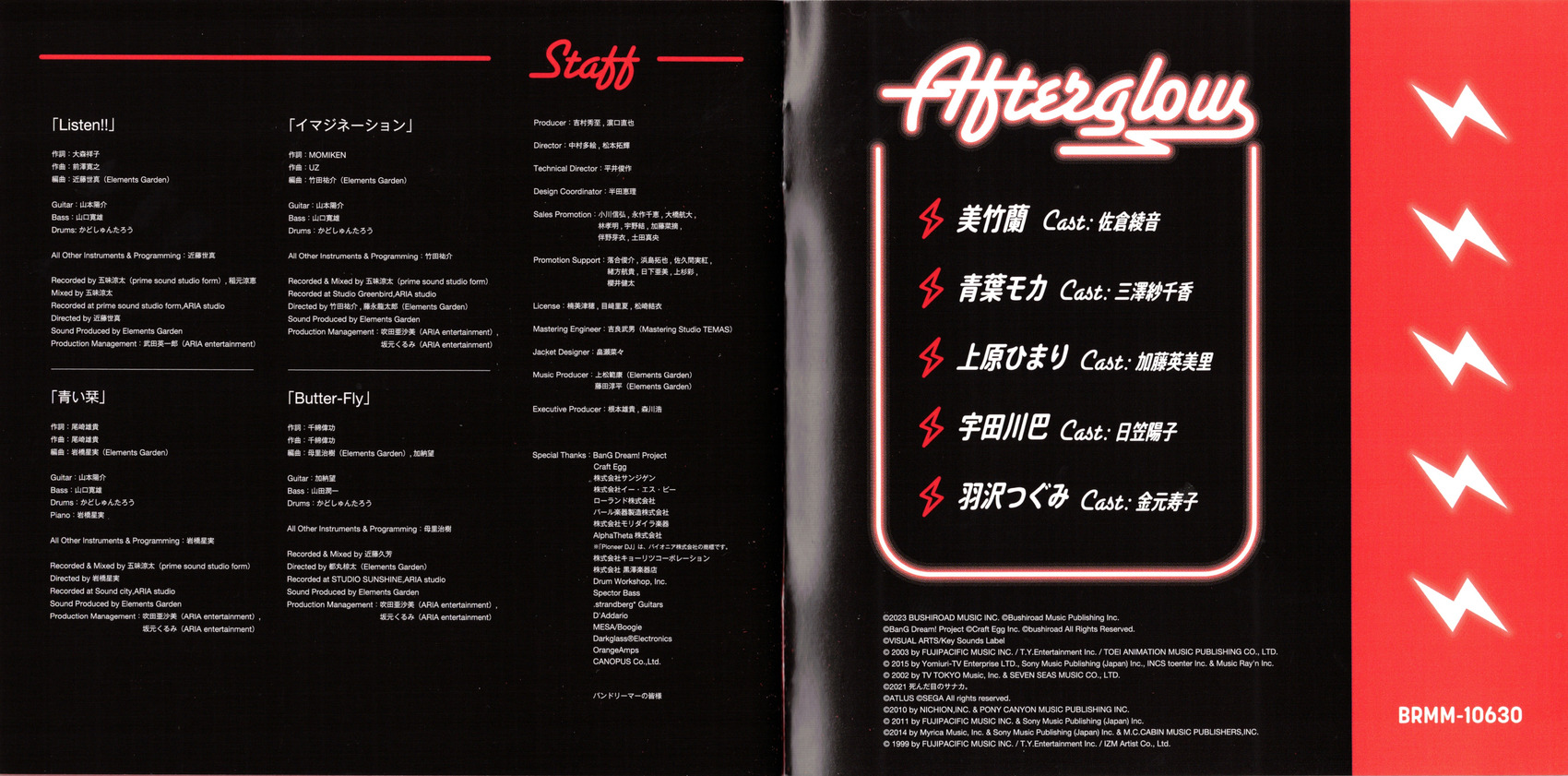 Special Thanks: BanG Dream! Project, Craft Egg, SANZIGEN Inc., ESP Co.,Ltd., Roland Corporation, Pearl Musical Instrument Co., Moridaira Co., Ltd, AlphaTheta Corporation, Kyoritsu Corporation Co., Ltd., T.KUROSAWA & Co.,Ltd., Drum Workshop, Inc., Spector Bass, .strandberg* Guitars, D'Addario, MESA/Boogie, Darkglass®Electronics, OrangeAmps, CANOPUS Co.,Ltd., All BanG Dreamers