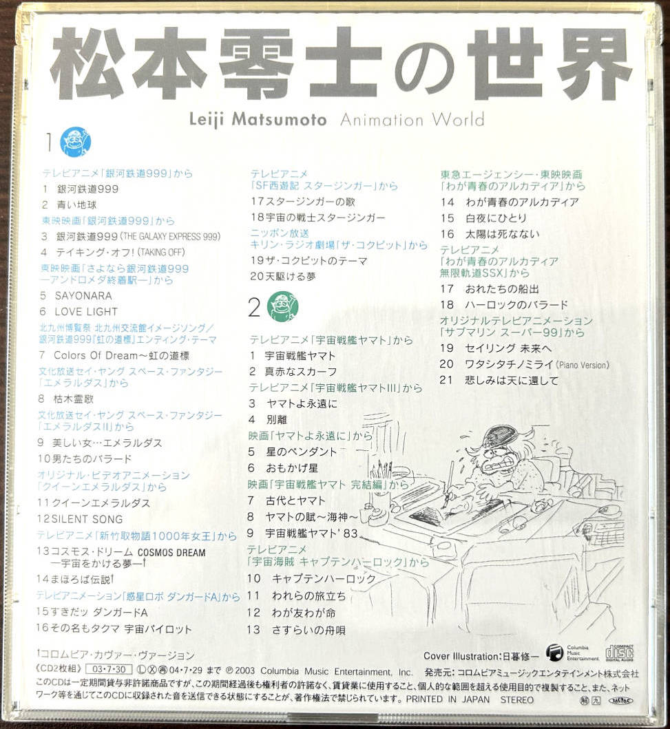 Compilation album containing the songs related to the animation works of Leiji Matsumoto, who celebrated the 50th anniversary of his career in 2003.