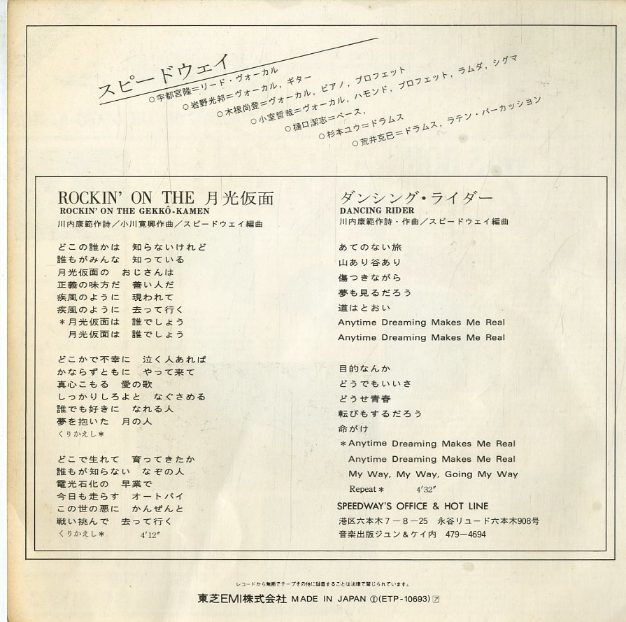 Side A contains a "Gekkou Kamen" cover song made for the commercial tie-up of Takeda Foods "Plussy"