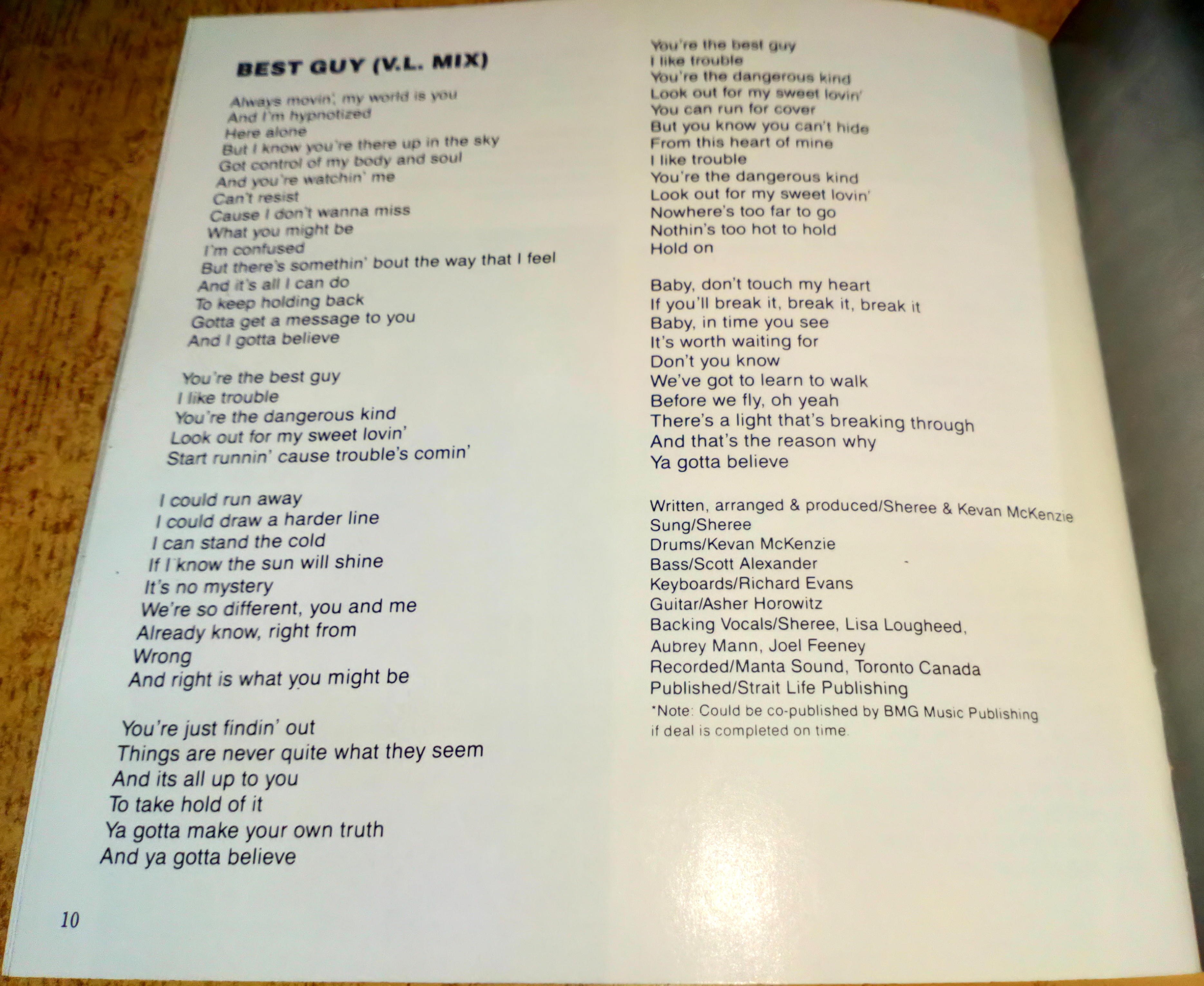 ©1989 BMG Sunbury Music (CAPAC) / BMG Dunbar Music (PROCAN)