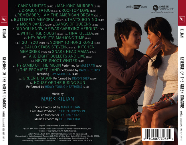 Лейбл Varese Sarabande выпустил саундтрек фильма «Драконы Нью-Йорка». Альбом можно купить на этом сайте за 16,98$. Музыку к криминальной драме режиссёров Вэй Кеунга Лау и Эндрю Лу написал Марк Килиан («Цоци», «Предатель»). Релиз включает 24 темы. Треклист чуть ниже: 01 Gangs United 02 Mahjong Murder 03 Dragon Tatoo 04 Rooftop... Показать