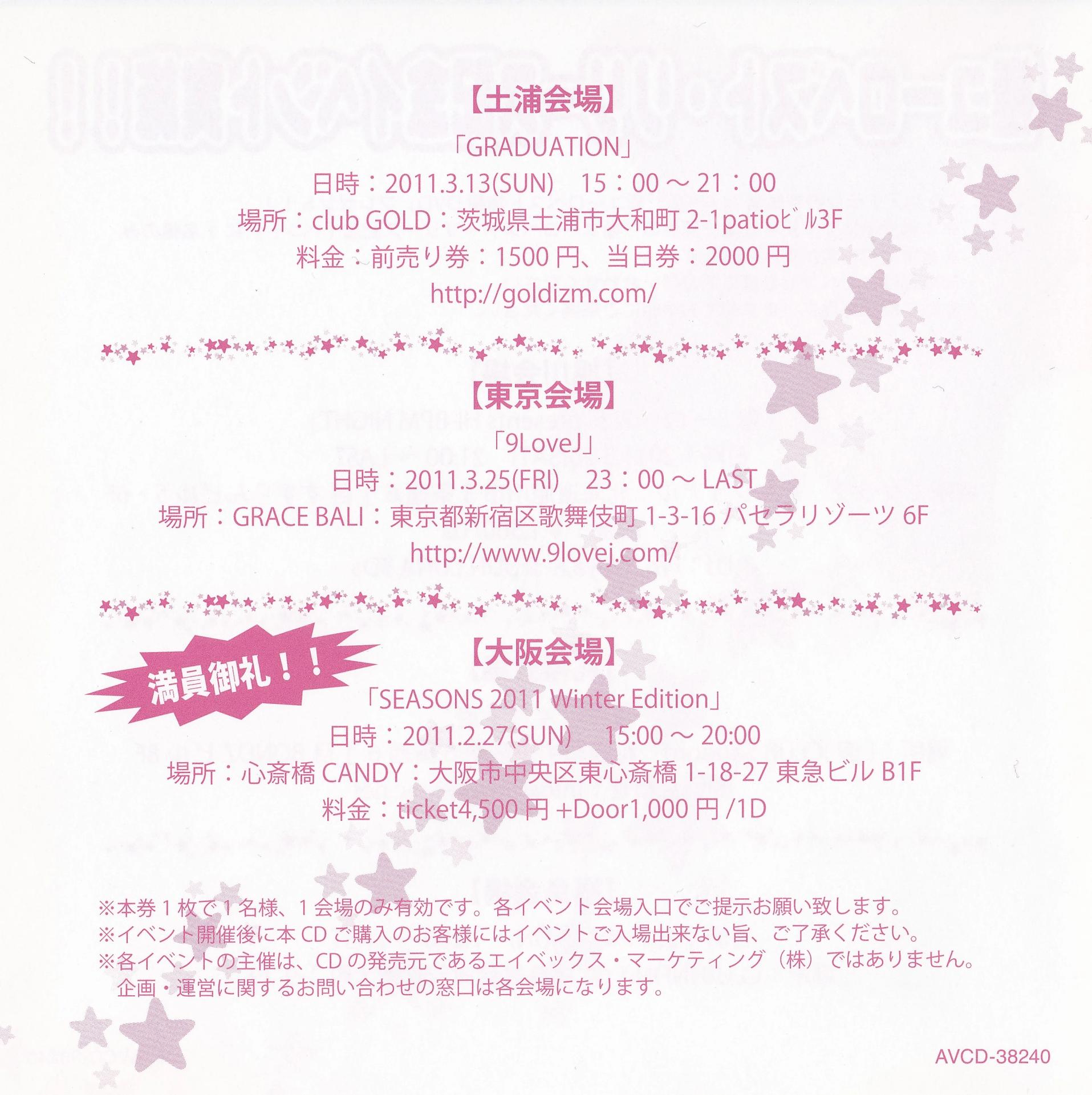 Club & Event Promotion: Hirofumi Takano, Vanity Maekawa, Naoya Miyake (avex trax)
