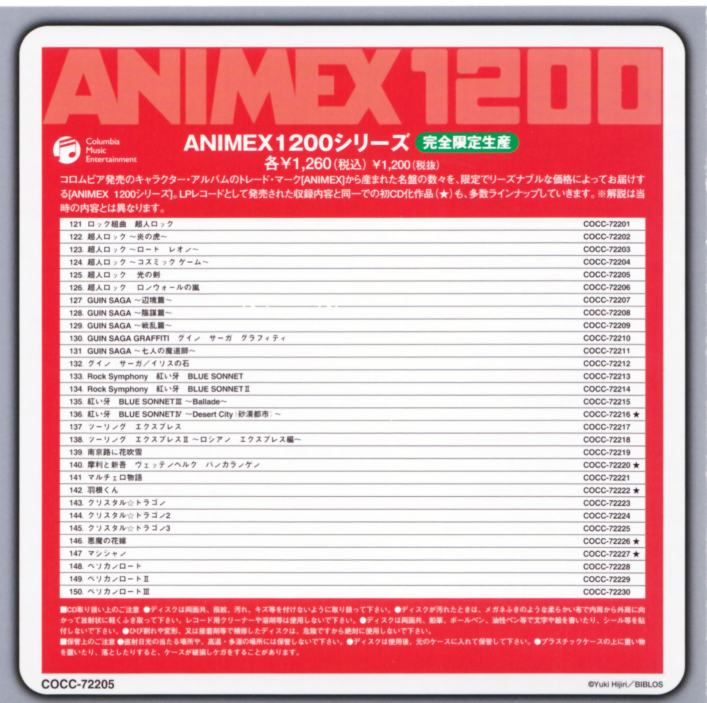 Limited reissued album (5000 pieces) as disc number "125" of Columbia "ANIMEX 1200" series. Digitally remastered.