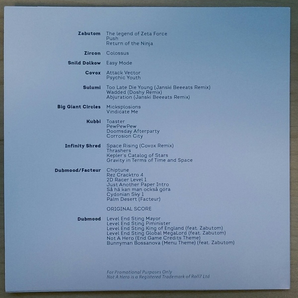 Soundtrack for the video game Not A Hero by Roll7 Ltd. Disc is a data CDr loaded with 320kbps mp3 files.