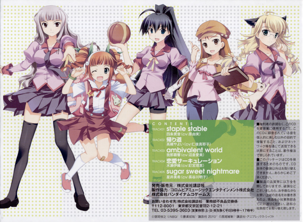 Contains IDOLM@STER covers of the Bakemonogatari anime opening themes.
