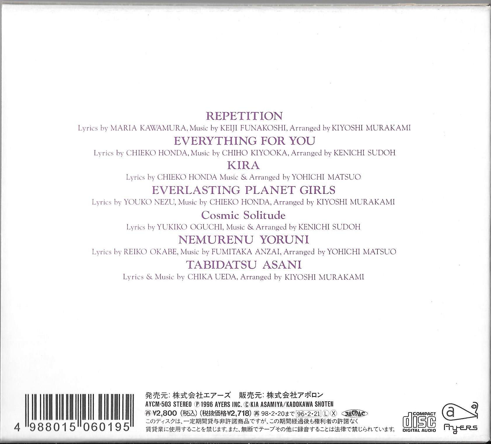 Lyrics by YOUKO NEZU, Music by CHIEKO HONDA, Arranged by KIYOSHI MURAKAMI