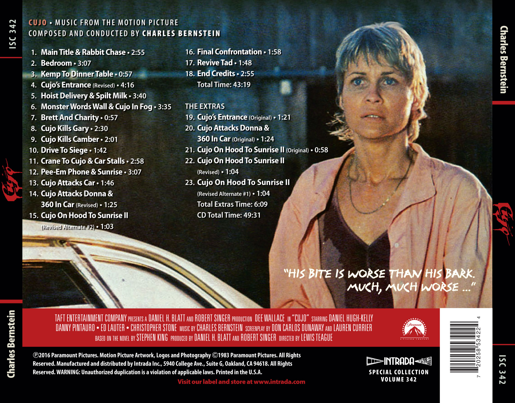 | 20 | Cujo Attacks Donna & 360 in Car (Original)Charles Bernstein | 01:24 | |