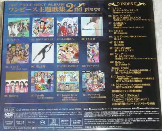 ONE PIECE BEST ALBUM One Piece Shudaikashuu 2nd Piece [Limited Edition]