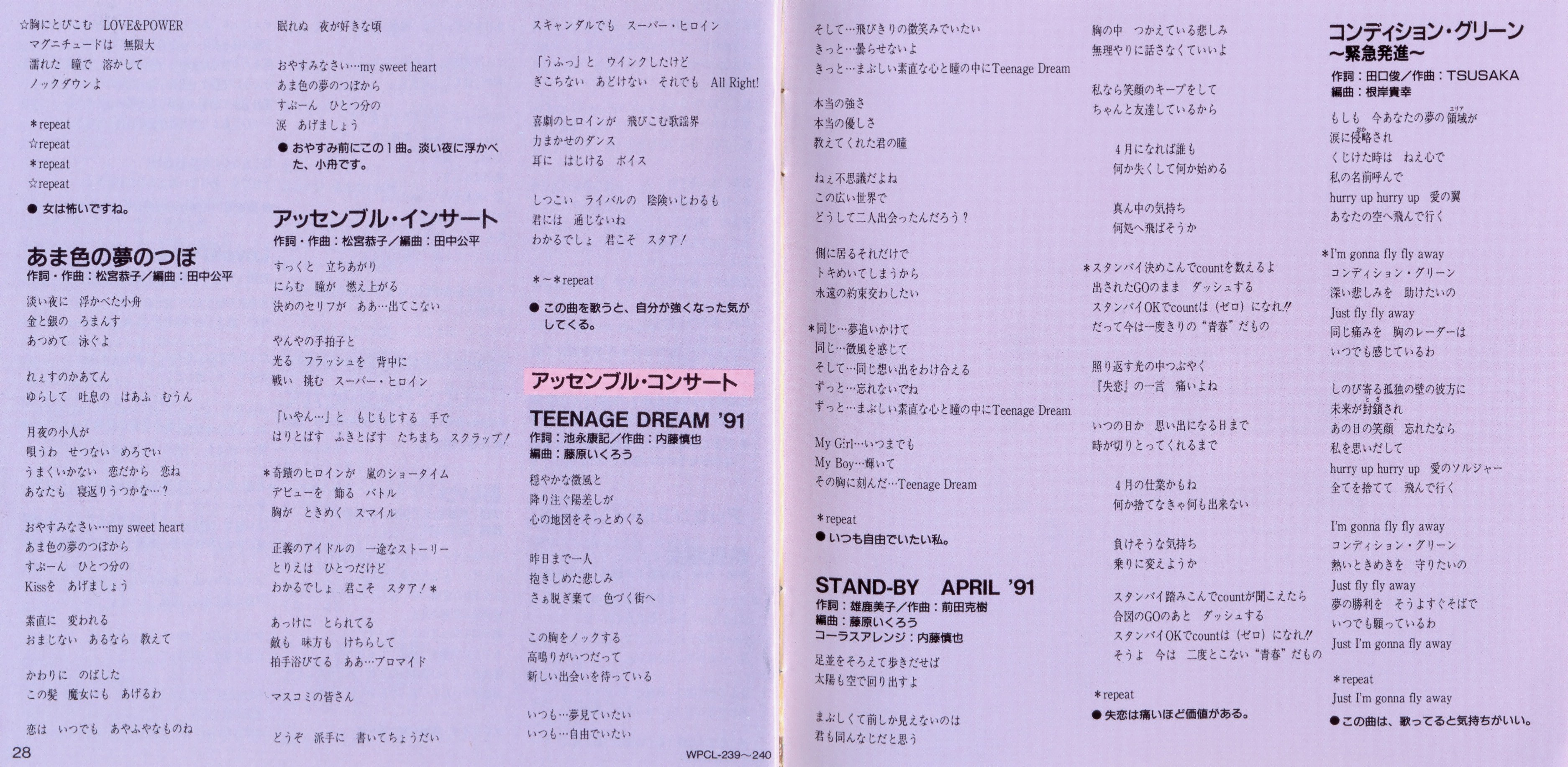 | Композиторы | 泰葉 / Akiko Kosaka / Hiroko Taniyama / Ichinen Miura / Икуро Фудзивара / Katsuki Maeda / Кохэй Танака / Kyoko Matsumiya / Masayuki Yamamoto / Osamu Totsuka / Shinya Naito / TSUSAKA |
