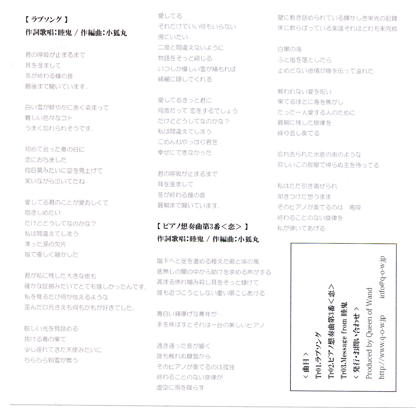 | 2 | Piano Sousoukyoku Daisanban <Koi> | 06:34 | |
