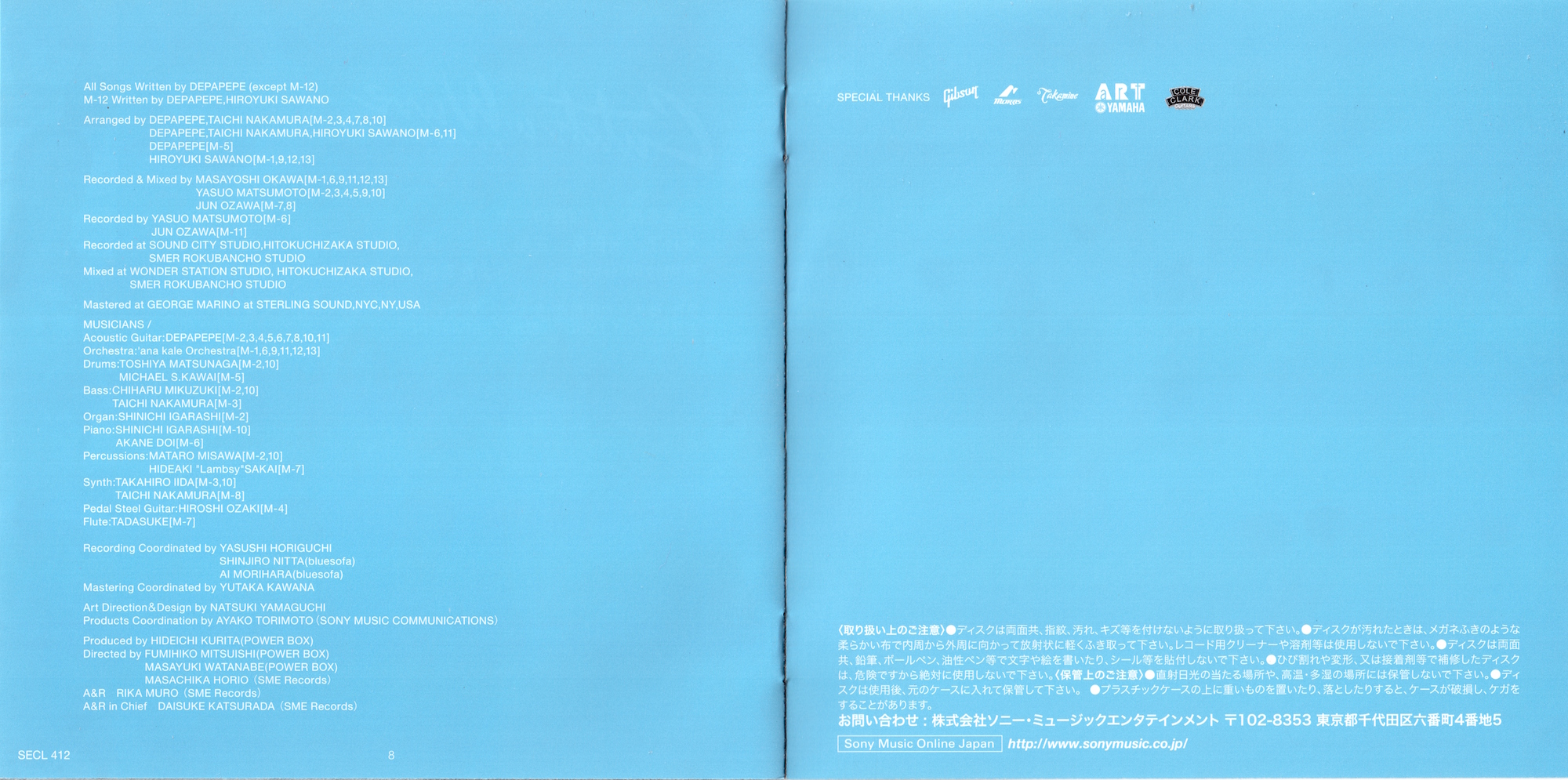 Recorded at SOUND CITY STUDIO, HITOKUCHIZAKA STUDIO, SMER ROKUBANCHO STUDIO