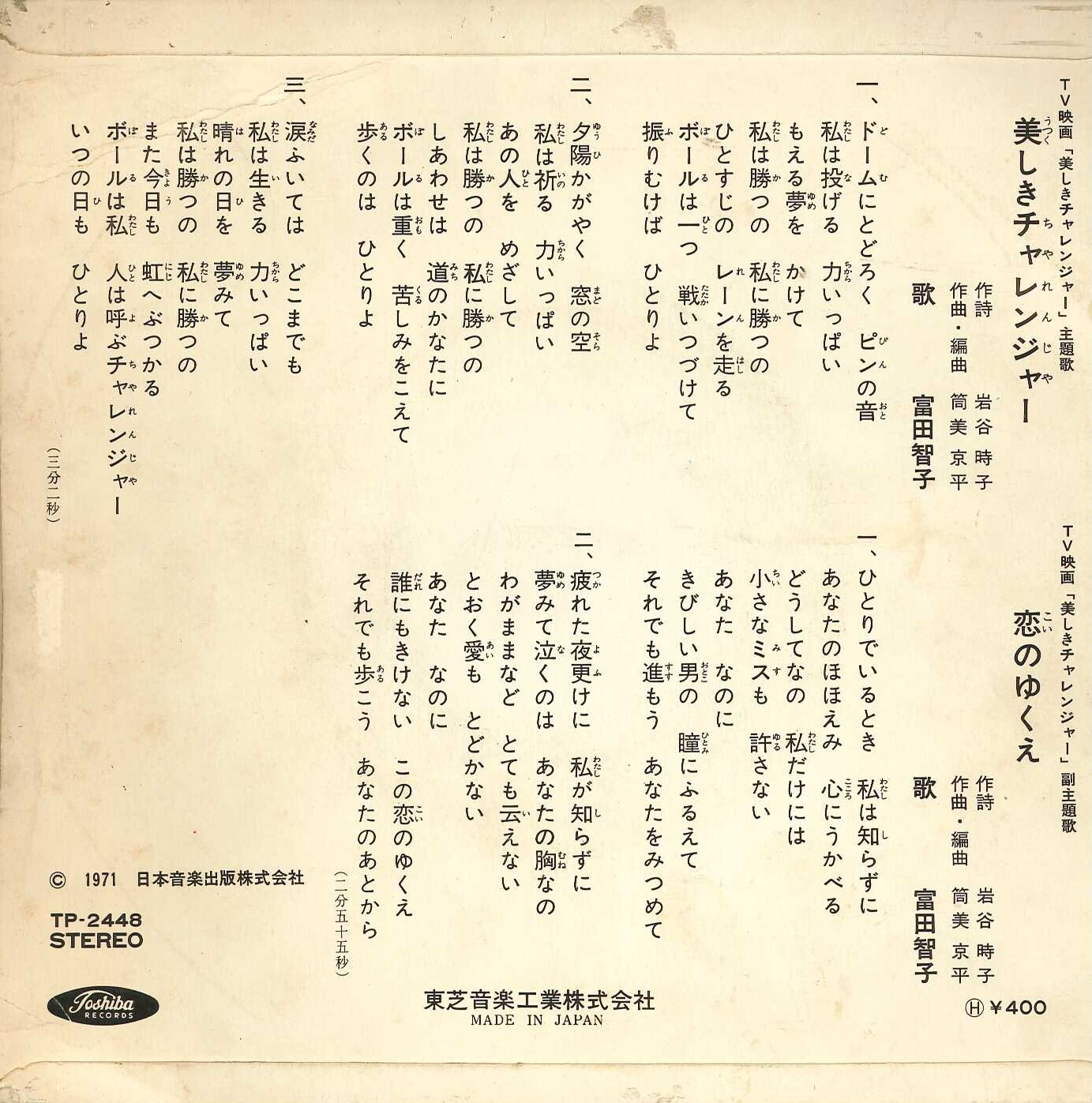 Lyricist: Tokiko Iwatani