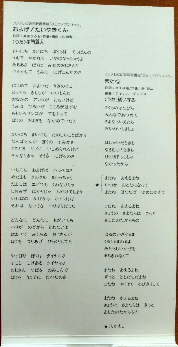 Reprint of the famous single "Oyoge! Taiyaki-kun" (CK-102).