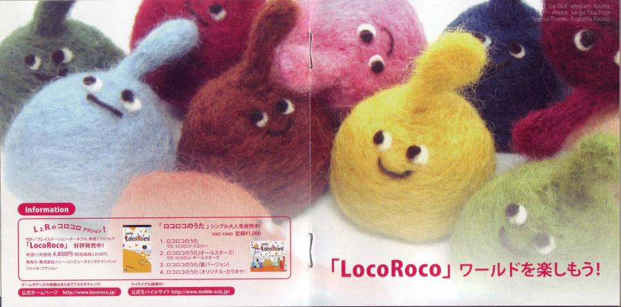 LocoRoco Yellow : Melody Chubak LocoRoco Pink : Leh LocoRoco Blue : Greg Irwin LocoRoco Red : Hiroaki Takechi LocoRoco Black : Jeff Gedert, Tomonobu Kikuchi LocoRoco Green : Cameron Strother Muimui : Kemmei Adachi