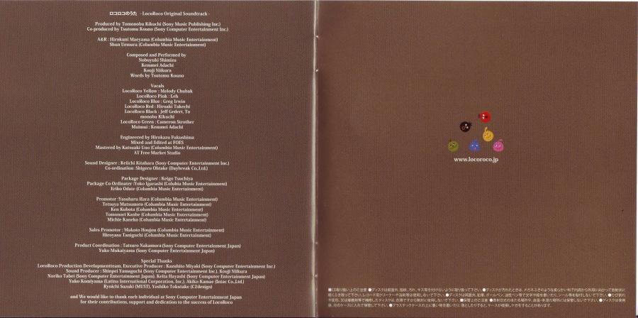 Особая благодарность: LocoRoco Production Development Team, исполнительному продюсеру Kazuhito Miyaki (Sony Computer Entertainment Inc.), саунд-продюсеру Shinpei Yamaguchi (Sony Computer Entertainment Inc.), Kouji Niikura, Noriko Tabei (Sony Computer Entertainment Japan), Keita Hayashi (Sony Computer Entertainment Japan), Yuko Komiyama (Latina International Corporation, Inc.), Akiko Kamae (Intac Co., Ltd.), Ryoichi Suzuki (MUST), Yoshiko Tokutake (C2design), а также каждого сотрудника Sony за вклад в проект и поддержку.