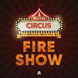 Circus with a red-nosed clown and a monkey on a ball fire show